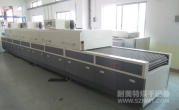 烘干爐部分外形尺寸:總長18米,外寬1.34米,網(wǎng)帶寬1.1米,總高1.22米,進料部分長10米,烘干部分長6.0米,緩沖區(qū)長0.3米,冷卻區(qū)1.2米,出料部分長0.5米;
