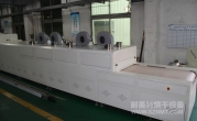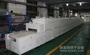 2、外形尺寸(約):總長24000mm*總高1690mm*總寬1220mm,地面到網(wǎng)帶的高度為850mm,爐體內(nèi)進(jìn)料高度為150mm;烘干部分總長14000mm,分7段獨(dú)立控溫(每段4個(gè)測溫?zé)犭娕迹慷?000mm。冷卻段長4000mm,UV預(yù)留區(qū)長2000mm,前后緩沖區(qū)各長500mm,進(jìn)出料部分長1500mm, 爐體前后裝有急停開關(guān)。